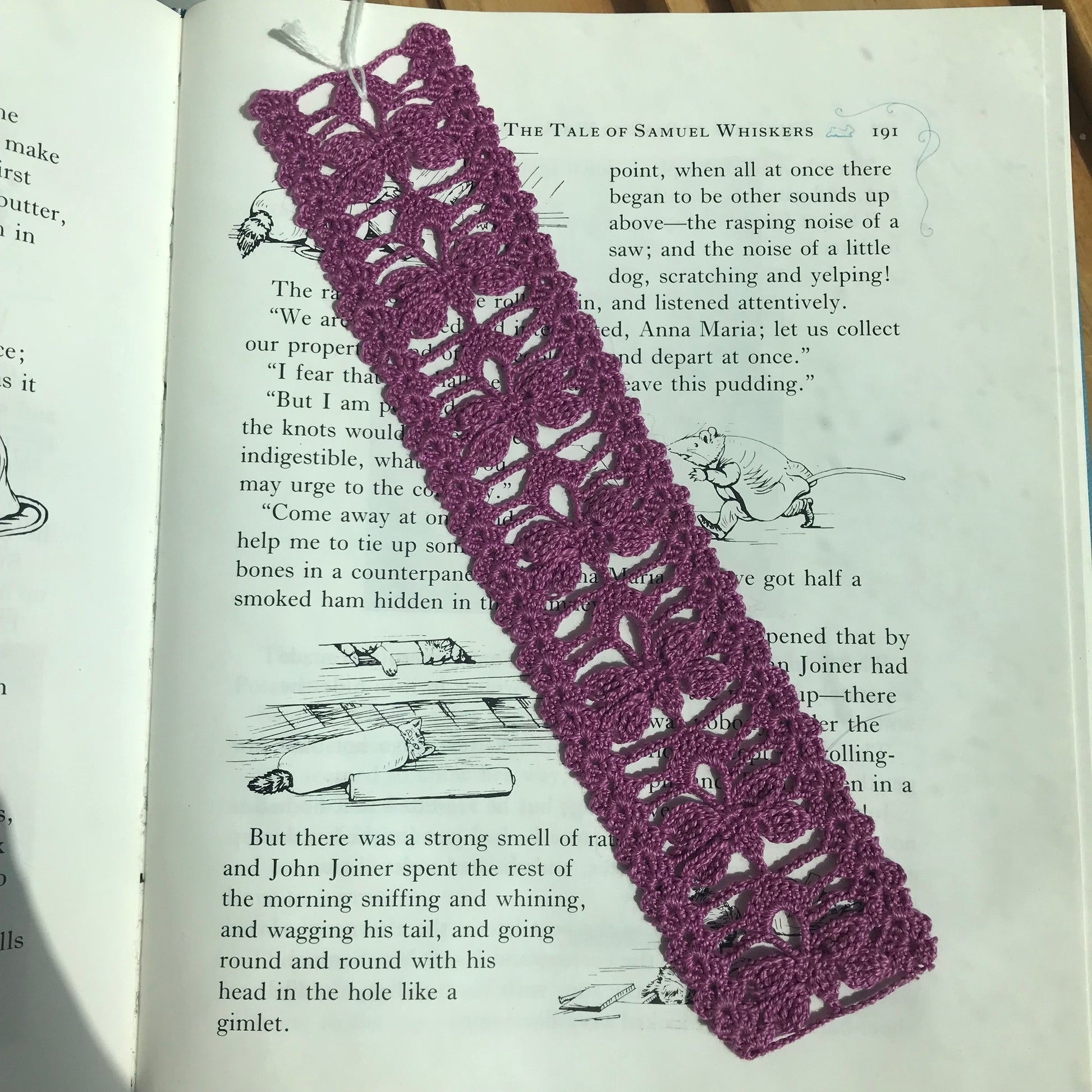 This bookmark is a delicate lace motif that depicts the image of 7 butterflies down the centre. Starch free to prevent transfer to book pages
