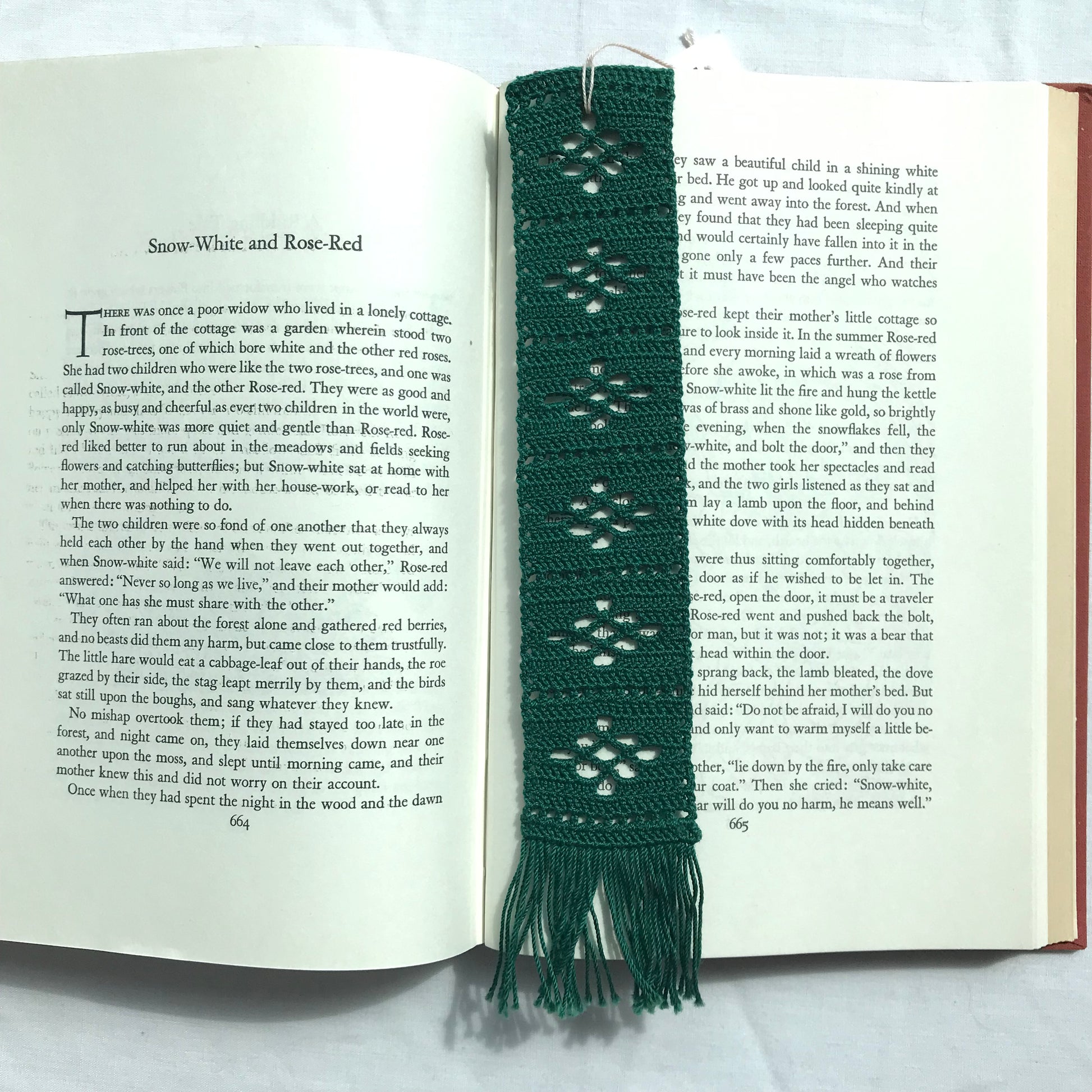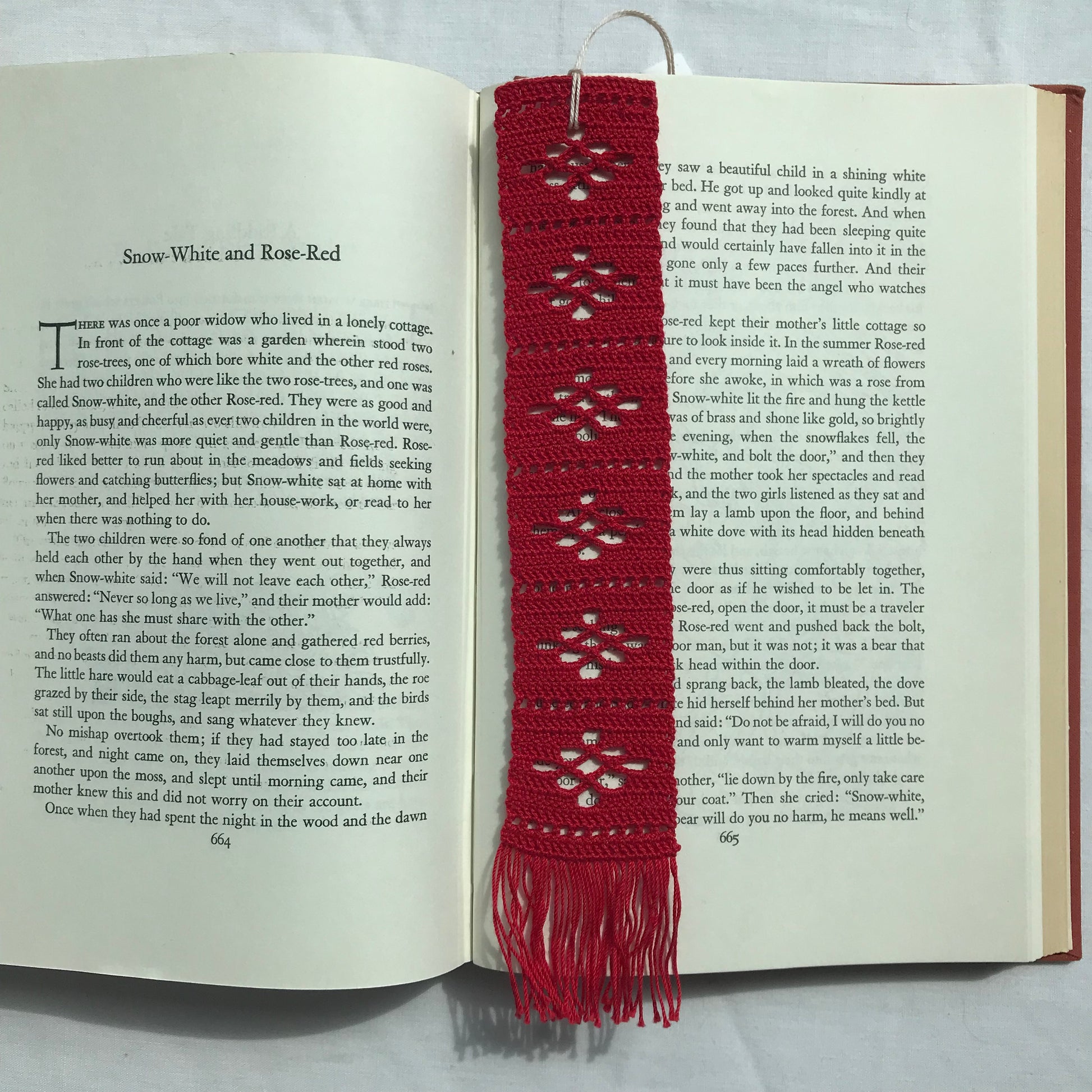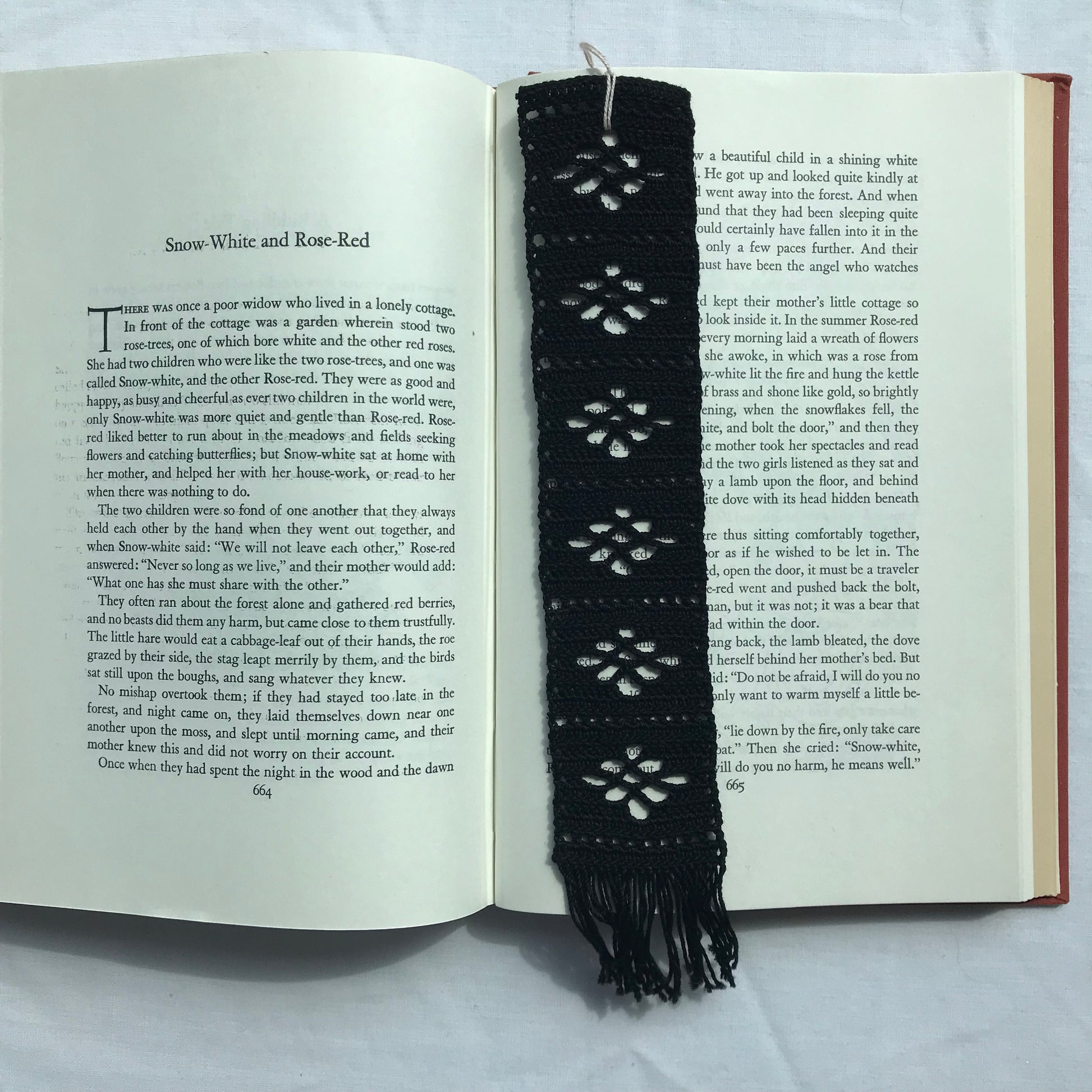 This bookmark is made with a crochet technique called filet crochet. It’s vintage inspired, with the shape of 6 flowers down the centre. Starch free to prevent transfer to book pages