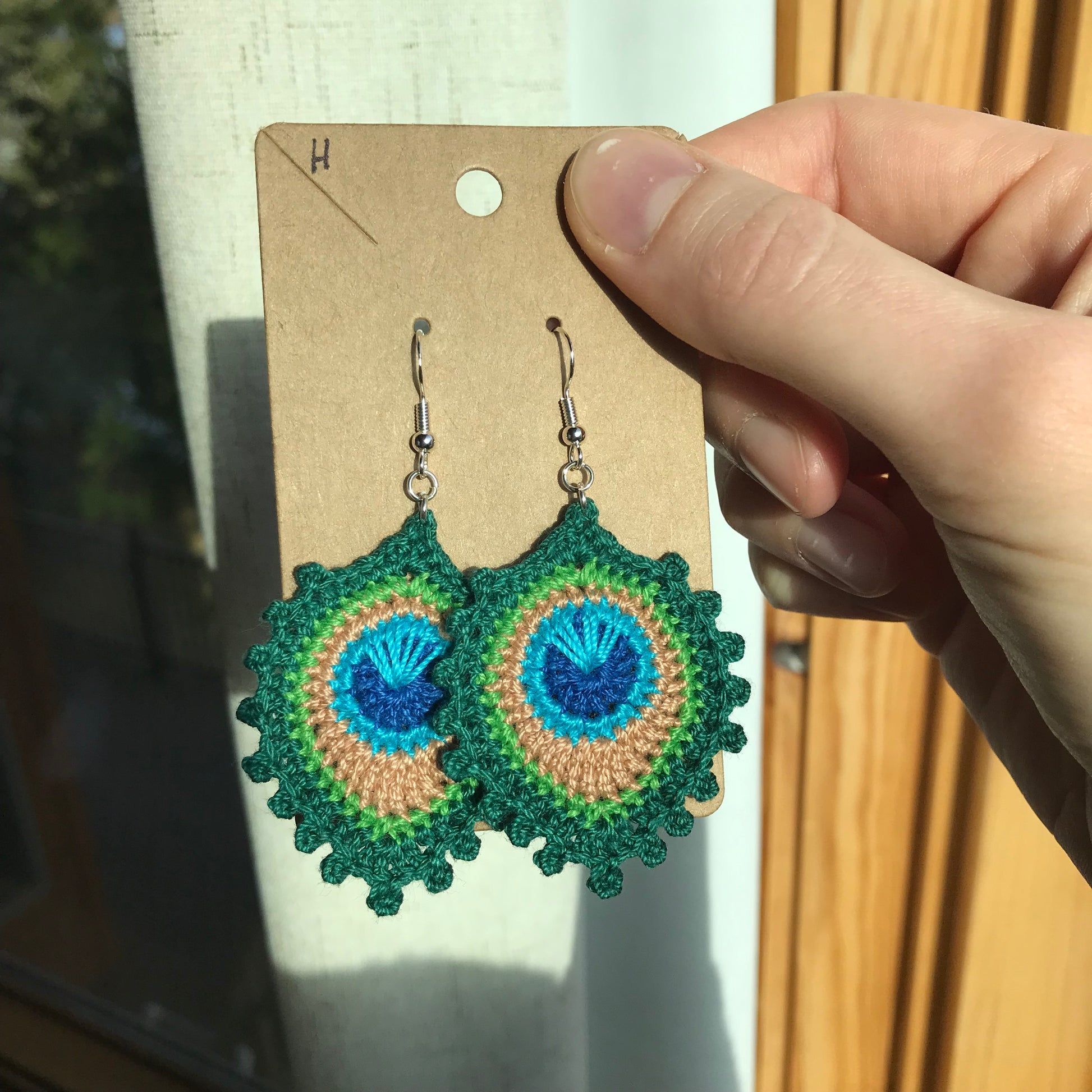 Crochet peacock feather earrings