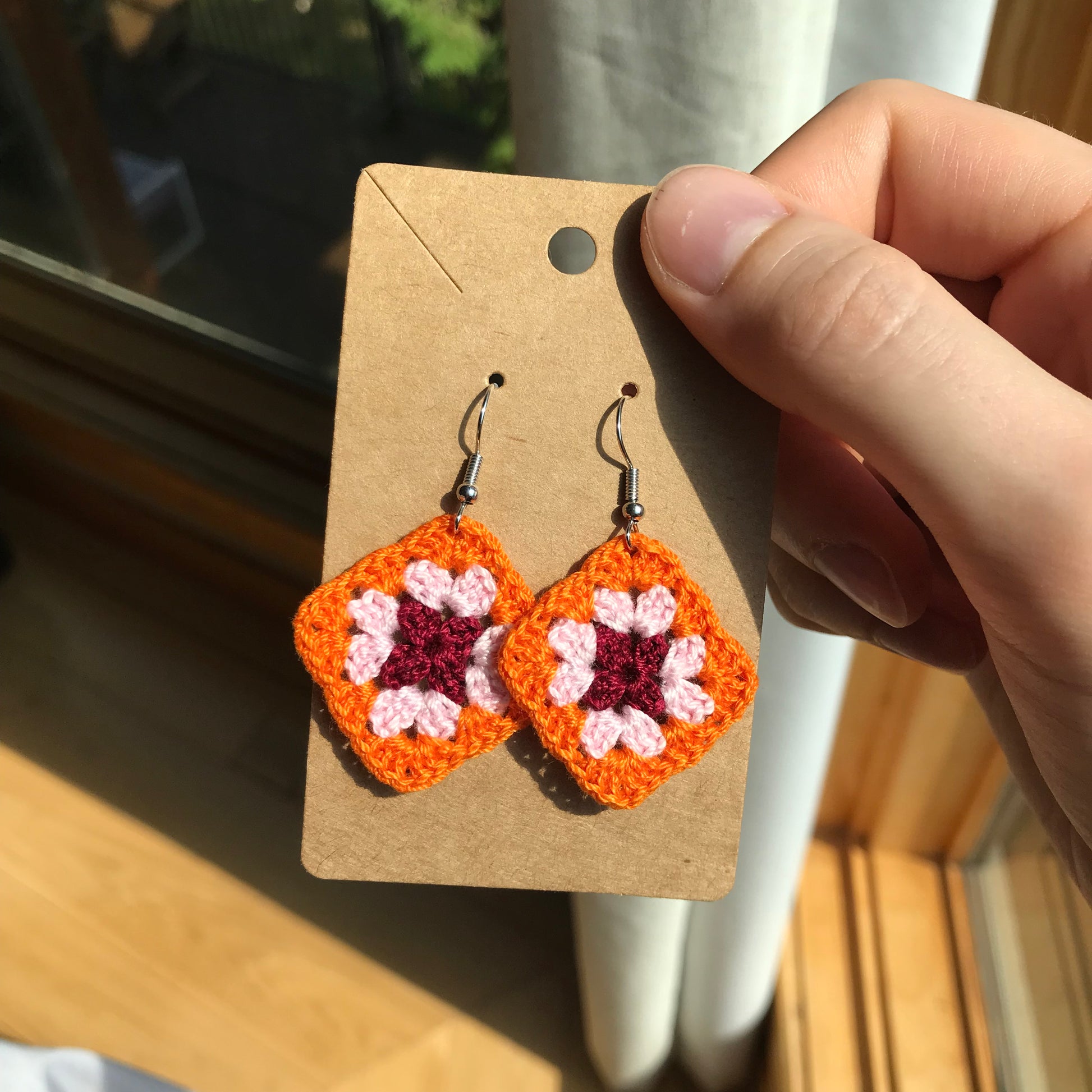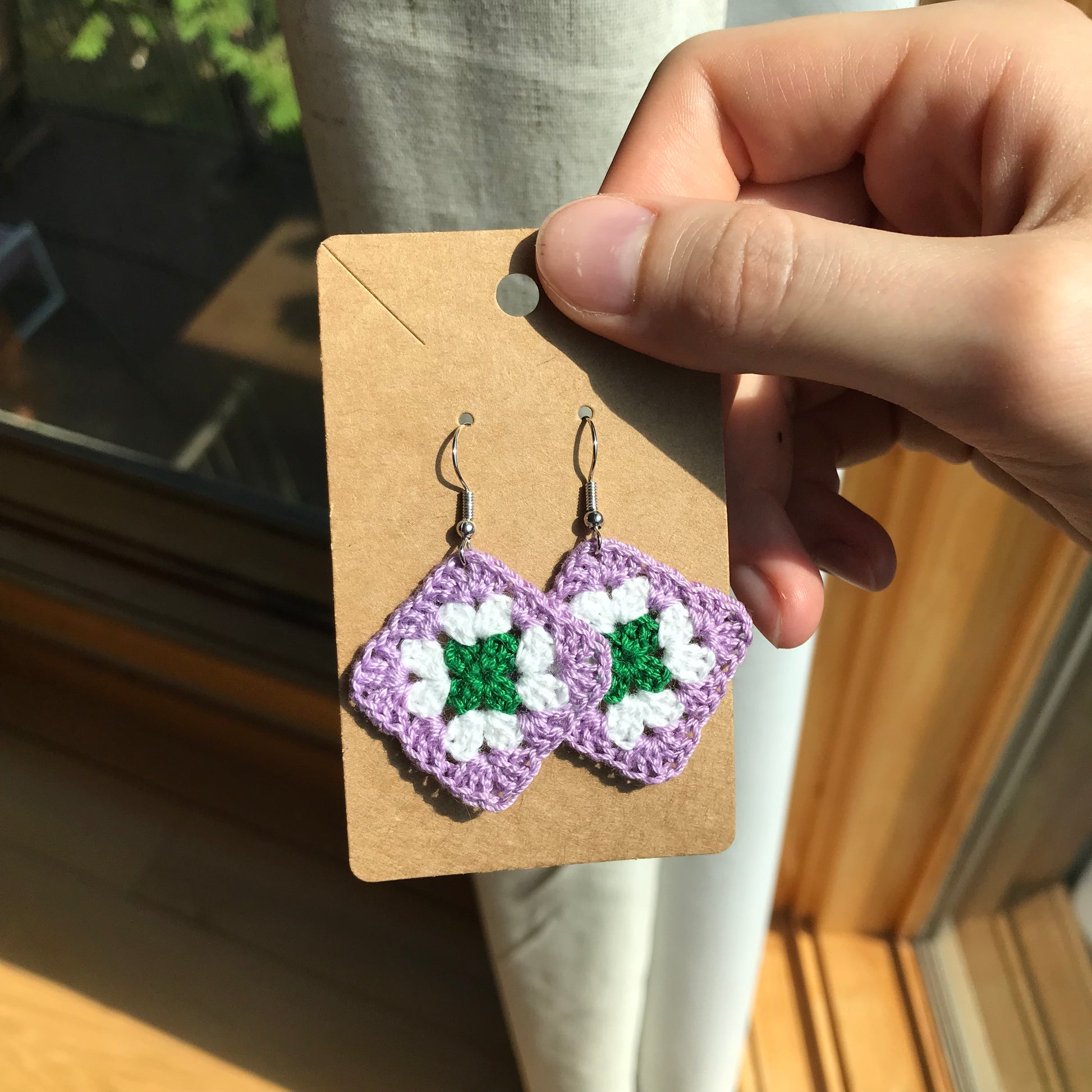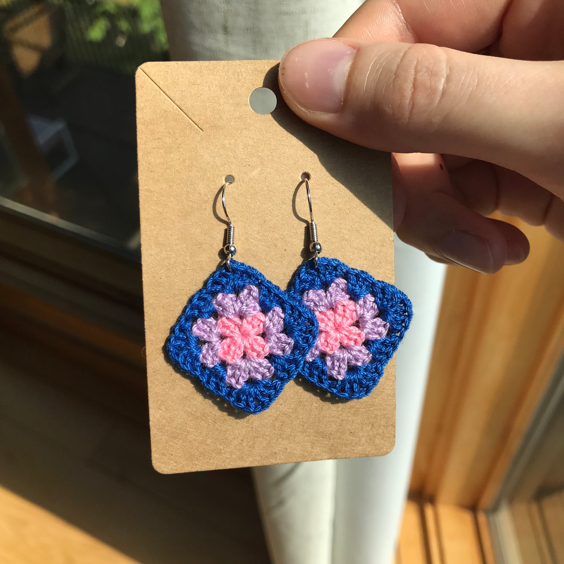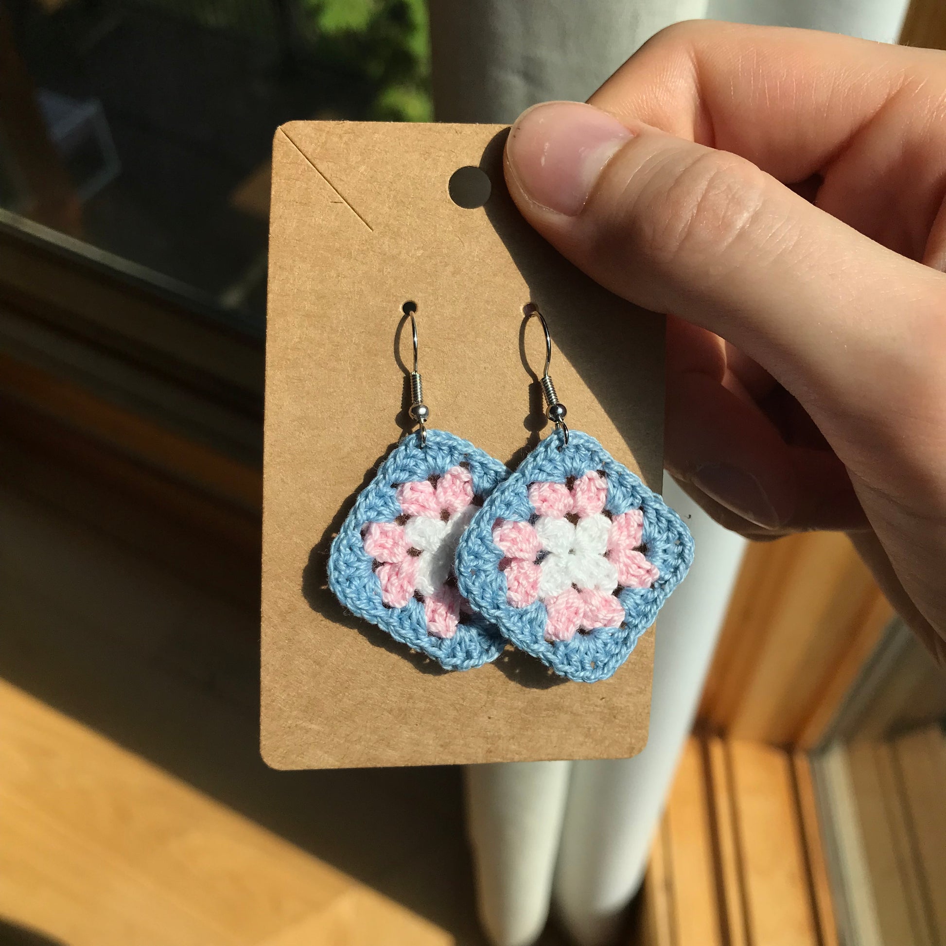 The classic crocheted granny square in colours representing different pride flags. In both earrings and charms so anyone can enjoy them!